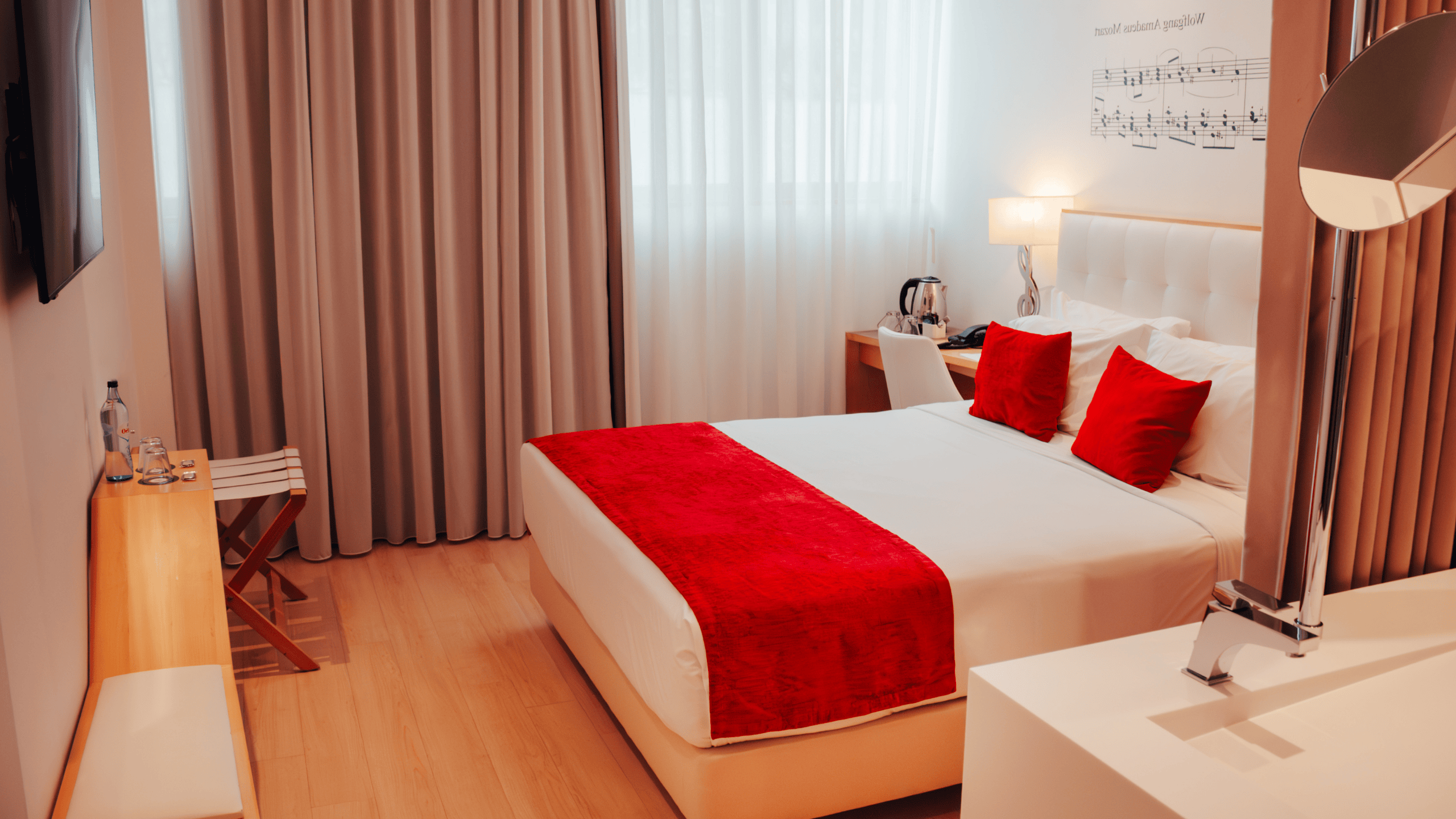 Desfrute de uma estadia ao som da música e opte pelo superior. Quarto está equipado com duas camas individuais ou uma cama de casal, ar-condicionado, máquina de café, minibar, cofre, TV LCD, telefone e Wi-Fi de alta velocidade. O quarto superior dispõe de um Kit Fitness. Reserve já!